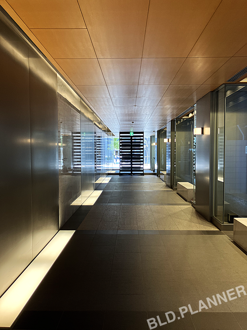 丸の内オフィス街。ガラス張りの綺麗な外観と高級感あるエントランス。制震構造を採用し、高い耐震安全性を確保したハイグレードオフィス。
